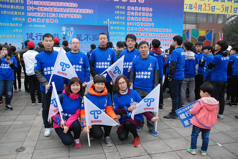 伴随着响亮的“关注自闭症,你我同参与,支持自闭症家庭,做一天百分之一”的宣誓口号,用蓝T恤、蓝丝带装饰的,来自17家爱心团体的52队志愿者组成的健走队伍,由会展广场出发,开始了沿建设路到达唐山市体育公园后折返,全程6公里的“征程”。