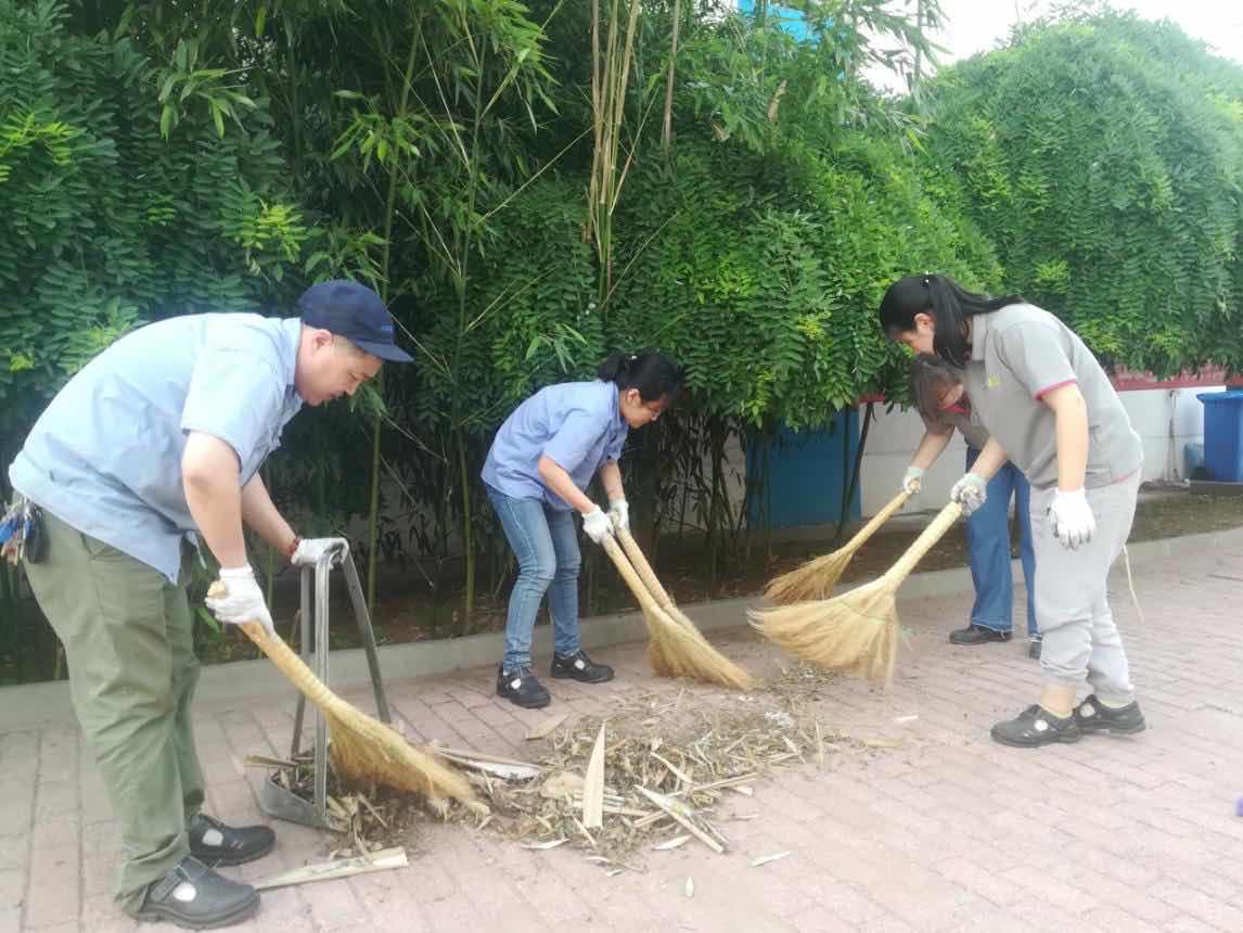 龙润公司党支部,积极响应上级号召,于6月12日,组织全体党员开展周末爱国卫生活动,在支部书记李伟和组宣委员于立新的带领下,认真落实“门前三包、门内达标”卫生责任制,开展对办公环境,厂区车间,公司门前及市政公路两侧等公共场所进行清洁清扫活动。重点清理落叶、杂草,烟蒂、纸屑、塑料袋等垃圾,消除了病菌滋生地,最后将清理垃圾运到转运站。当日天气很热,大家很累,汗水浸透了衣衫,但大家脸上露出灿烂的笑容。