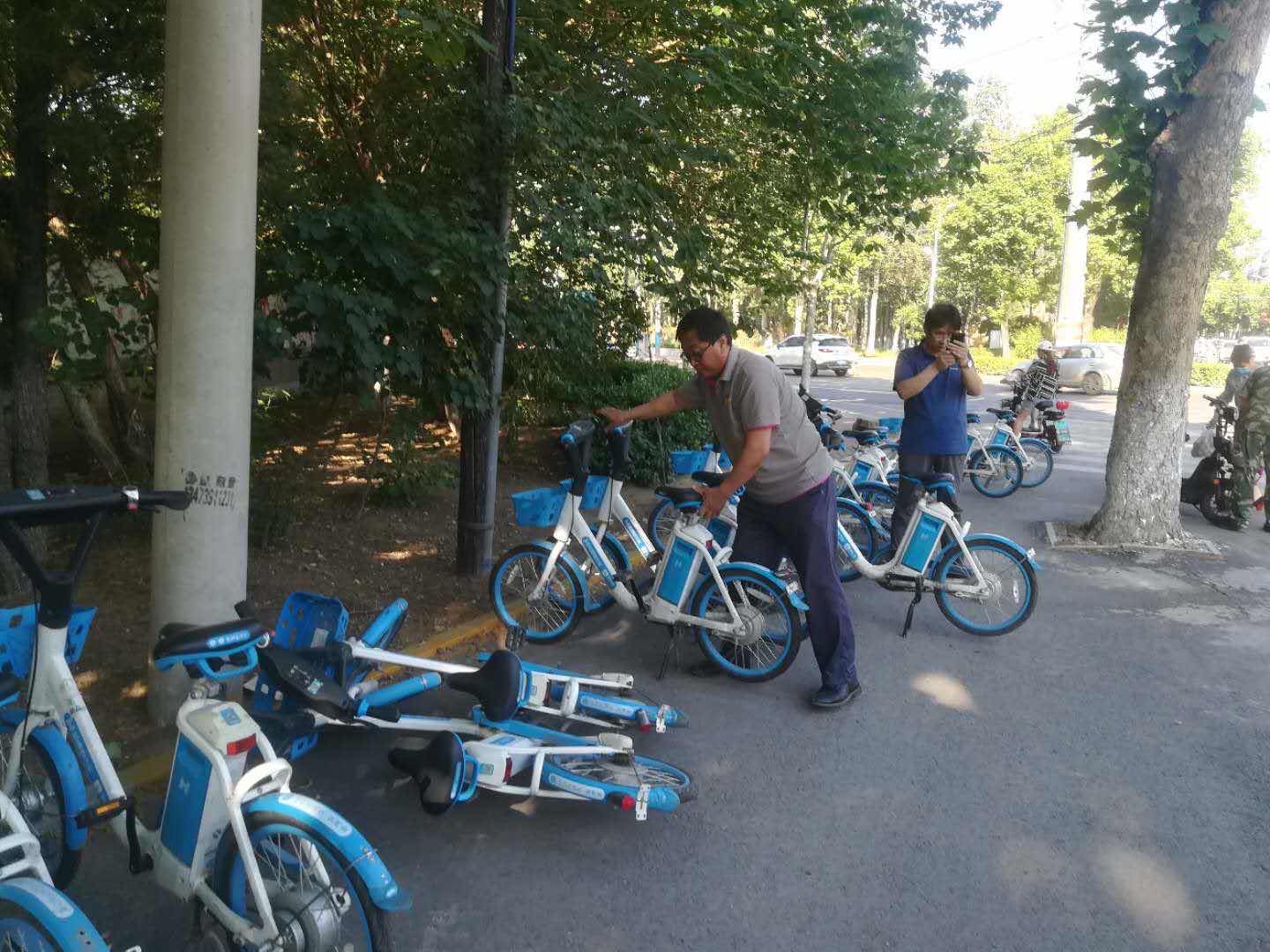党员扶起共享单车